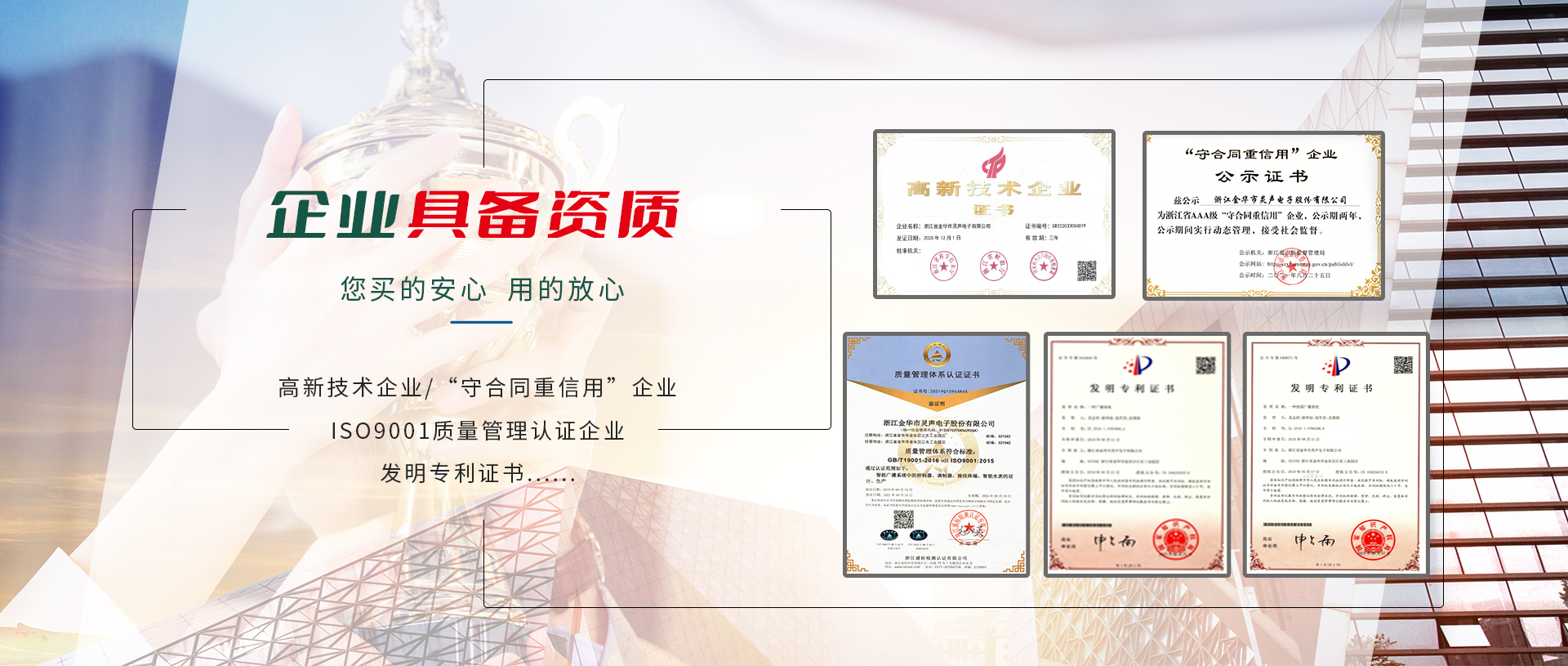 公司榮譽:先后被認定為國家高新技術企業,浙江省高新技術企業,浙江省工商業守合同重信用單位,浙江省科技型中小企業,金華市專利示范企業,金華市誠信民營企業等榮譽。